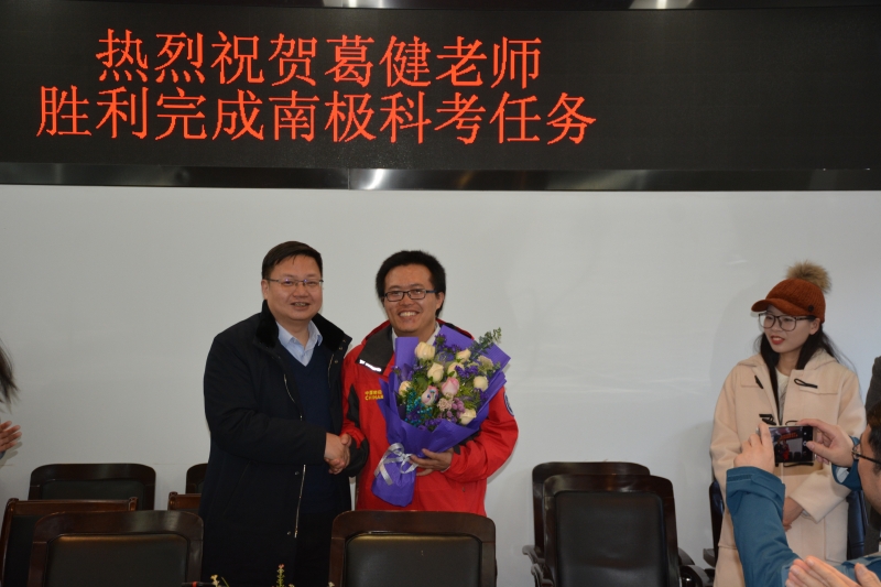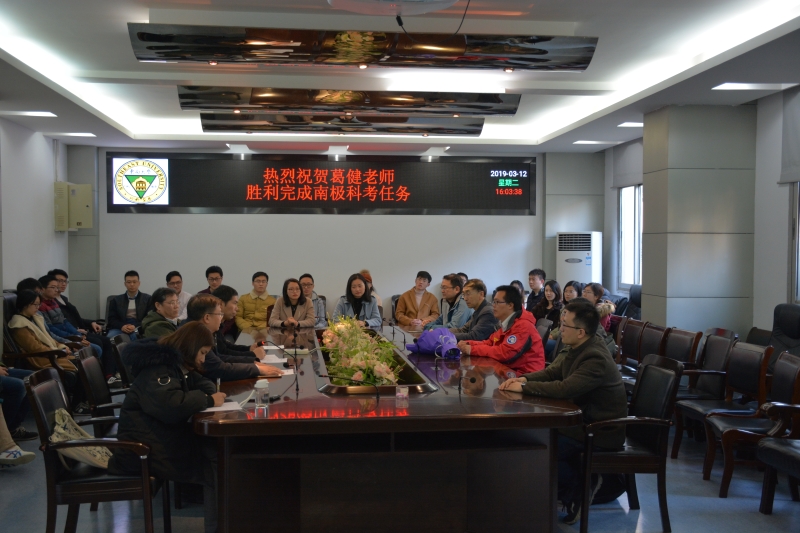 2019年3月12日16时,祝贺365best体育亚洲官网葛健老师胜利完成南极科考任务的欢迎仪式在中心楼教育部重点实验室举行。校科研院副院长张晓兵,学院党委书记袁晓辉,院长魏海坤,以及学院师生代表参加了欢迎仪式。