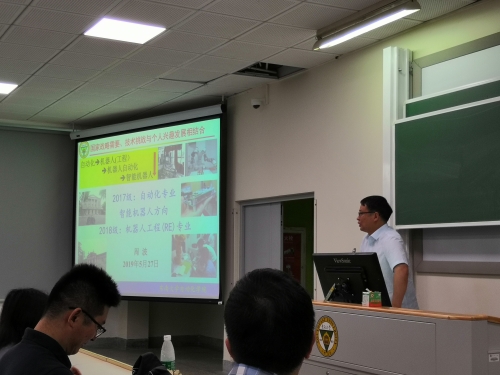 2019年5月27日中午,365best体育亚洲官网在九龙湖校区召开2018级专业分流、2017级方向分流介绍会暨诚信教育年级大会。院长助理张凯锋老师对365官网大一分专业和大二分方向的政策进行了整体介绍,金立左、牛丹、张亚和周波等四位老师分别对智能信息处理、控制工程、控制科学和智能机器人(机器人工程)等四个方向,就实践应用、课程体系、师资力量、就业方向等内容进行了详细介绍。