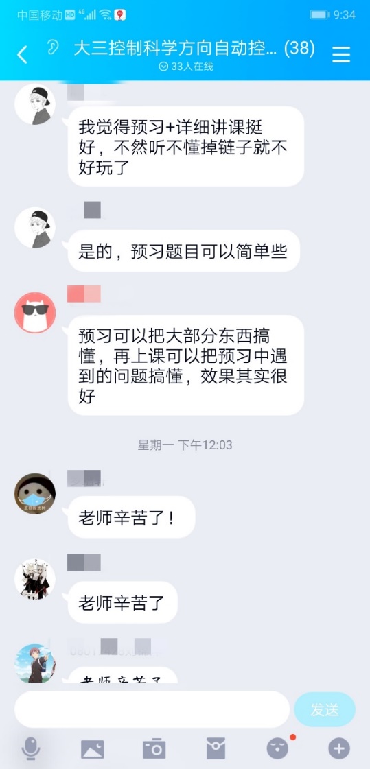 老师们教学的目标不是自己教的好不好,而是同学们学的好不好。什么样的方式更适合同学们学习、更有效果,当然也要听听同学们的想法。担任自动控制原理课程的张亚老师在qq群内和同学们一起探讨更合理、合适、有效的教学方式,取得了很好的效果。