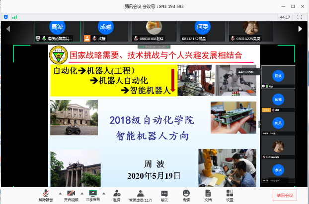 2020年5月19日,365官网通过腾讯会议,举行2018级自动化专业方向分流线上宣讲会。金立左、周波、陈杨杨、牛丹等四位老师分别对智能信息处理、智能机器人、控制科学和控制工程等四个方向进行了介绍。2018级自动化专业的100多名本科生与会聆听,他们通过本次会议了解相应的专业方向,将对之后的专业课选择做出决定。辅导员成曦主持了会议。