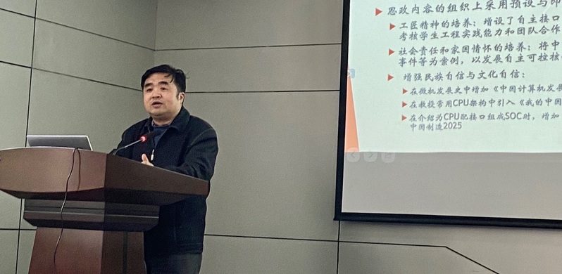 在叶教授的报告之后,三位校级课程思政优秀示范课程的课程负责人介绍了相关课程的课程思政实施案例。计算机学院杨全胜副教授介绍了《微型机系统与接口技术》课程中的课程思政实施策略,该课程秉承自主创新的理念,与学生一起设计芯片与计算机底层系统与上层应用,不仅将思政融入案例,还将思政融入了学生的项目实践。张凯锋教授的报告展示了《电力电子技术》课程中思政的实施方案,作为365best体育亚洲官网的专业主干课,该课程思政的开展对学院老师们开展课程思政具有较强的指导意义。李骏扬介绍了在《计算机程序设计》课程中,将课程思政与整体教学设计相融合的设计方法,并总结了学院目前课程思政开展现状,汇报了课程思政未来开展的思路。