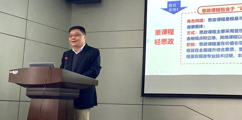 汤勇明部长就课程思政的重要性进行了论述,就课程思政如何在学院有效实施进行了指导,并列举了不同学科专业的课程思政重点任务,阐述了思政的内涵,辨析了课程思政实施过程中的常见误区与困惑。汤部长还就学校即将实施的本科课程课堂教学质量综合评价办法进行了介绍。