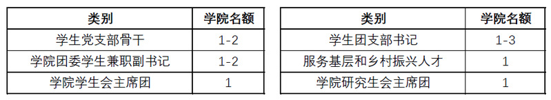 3.各学院思想进步,致力于奉献基层服务、投身乡村振兴的优秀青年,在学习科研、创新创业、社会实践、志愿服务、疫情防控、自立自强、文体活动等方面表现突出,获得省级及以上奖项或荣誉表彰的同学,也可以推荐。