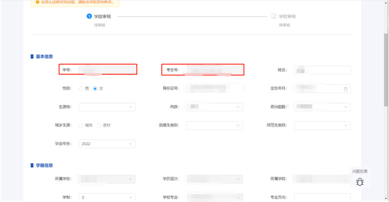 5、生源上报新增必填信息为城乡生源、家庭住址,请学生如实填写。