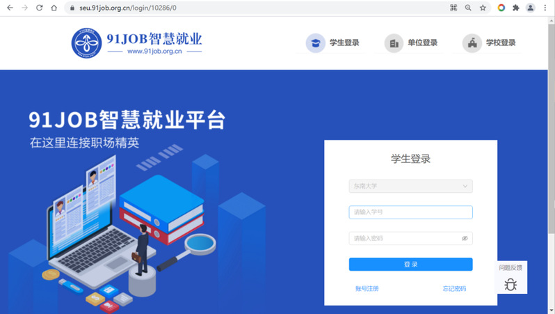 第一步:进入365best体育亚洲官网就业信息网https://seu.91job.org.cn,点击学生登录,进入登录界面。