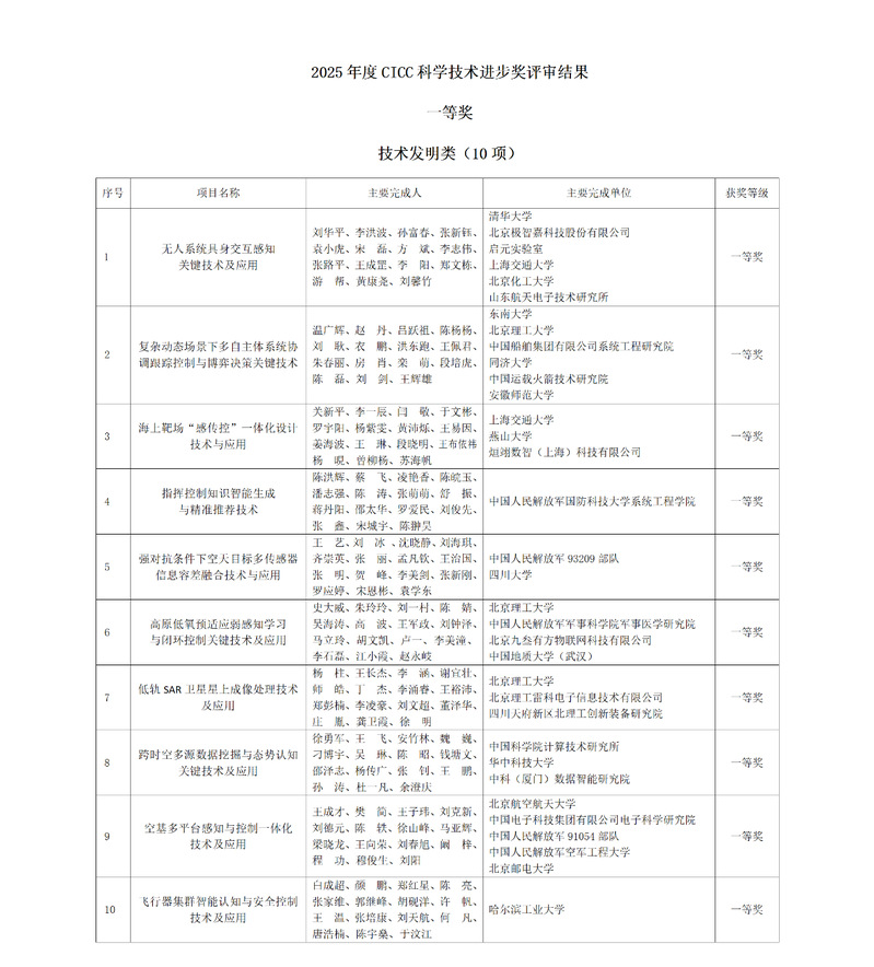 近日,中国指挥与控制学会(CICC)公布了2025年度中国指挥与控制学会科学技术奖评审结果,经资格审查、评审和终评三个阶段,共对64个项目、12名个人进行授奖。365best体育亚洲官网作为第一完成单位,联合北京理工大学等五家科研机构共同申报的“复杂动态场景下多自主体系统协调跟踪控制与博弈决策关键技术”项目,荣获技术发明类一等奖(本年度共10项)。