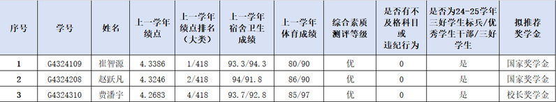 根据学校通知要求和评审工作安排,经学生本人申请、资格审核、学院评审,拟推荐以下同学获评2024-2025学年国家奖学金、校长奖学金。具体名单见下图。