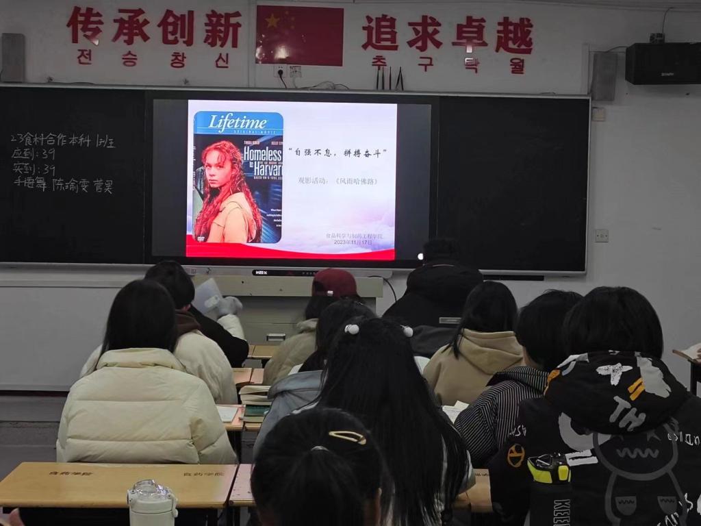 为培养学生自强不息、拼搏奋斗的精神,进一步做好家庭经济困难学生的发展型资助育人工作,yabo鸭脖官网于11月17日在文科楼教室组织2023级学生观看了励志电影《风雨哈佛路》。