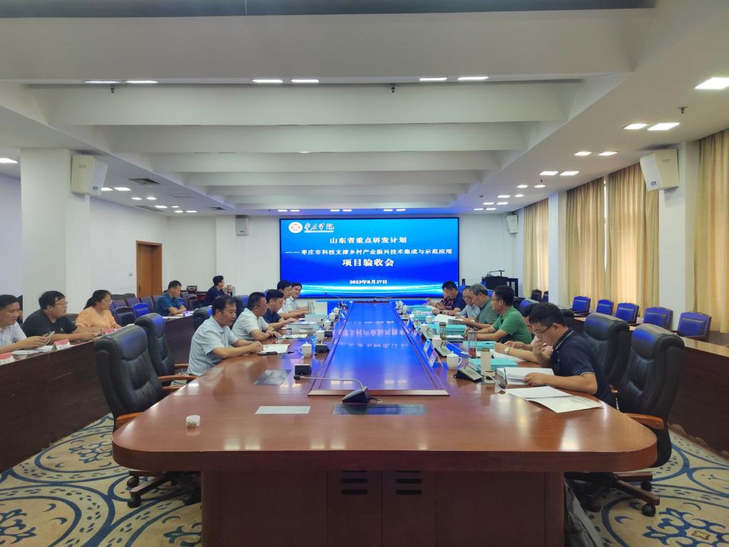 2023年8月27日,山东省科技厅组织来自省内农业领域知名专家和财务审计专家,对由我校牵头承担的山东省重点研发计划“枣庄市科技支撑乡村产业振兴技术集成与示范应用”项目进行了会议验收。山东省科技厅农村中心业务科长武军,枣庄学院副校长李目海、枣庄市科技局农社科科长谢明出席会议并讲话,科技处处长伊文涛、食品科学与制药工程院长张立华教授以及项目组成员等40余人参加会议。会议由武军主持。