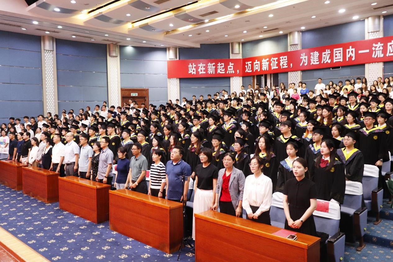 六月蝉鸣又起,青衿之志可期。6月18日上午,yabo鸭脖官网2023届毕业典礼暨学士学位授予仪式,在市中校区综合楼报告厅隆重举行。校党委副书记、校长李文喜,学生工作处处长王维忠,学院党政领导、教师代表、235名毕业生,及在校学生代表共400余参加仪式。仪式由学院党总支副书记周玉亮主持。