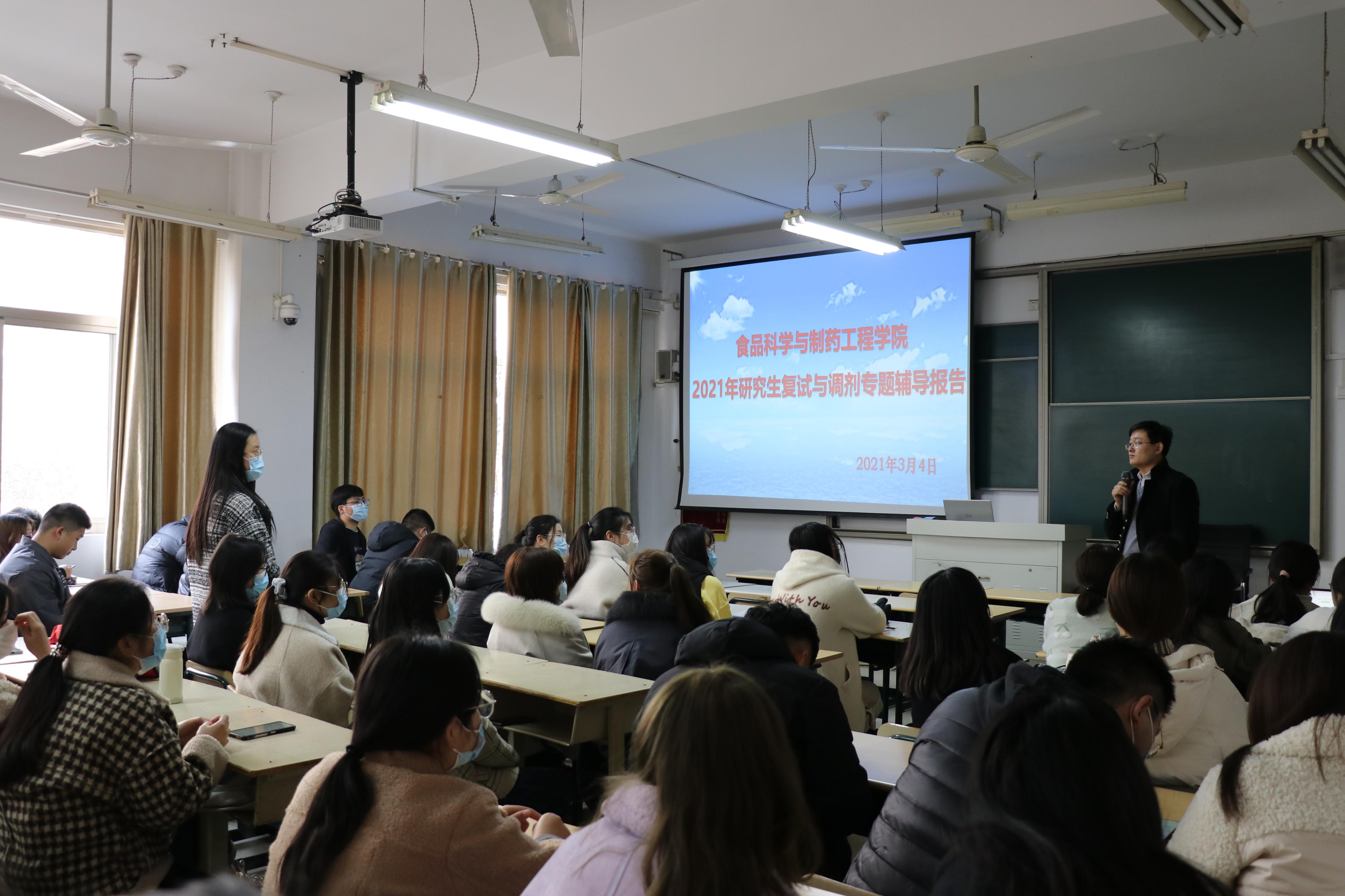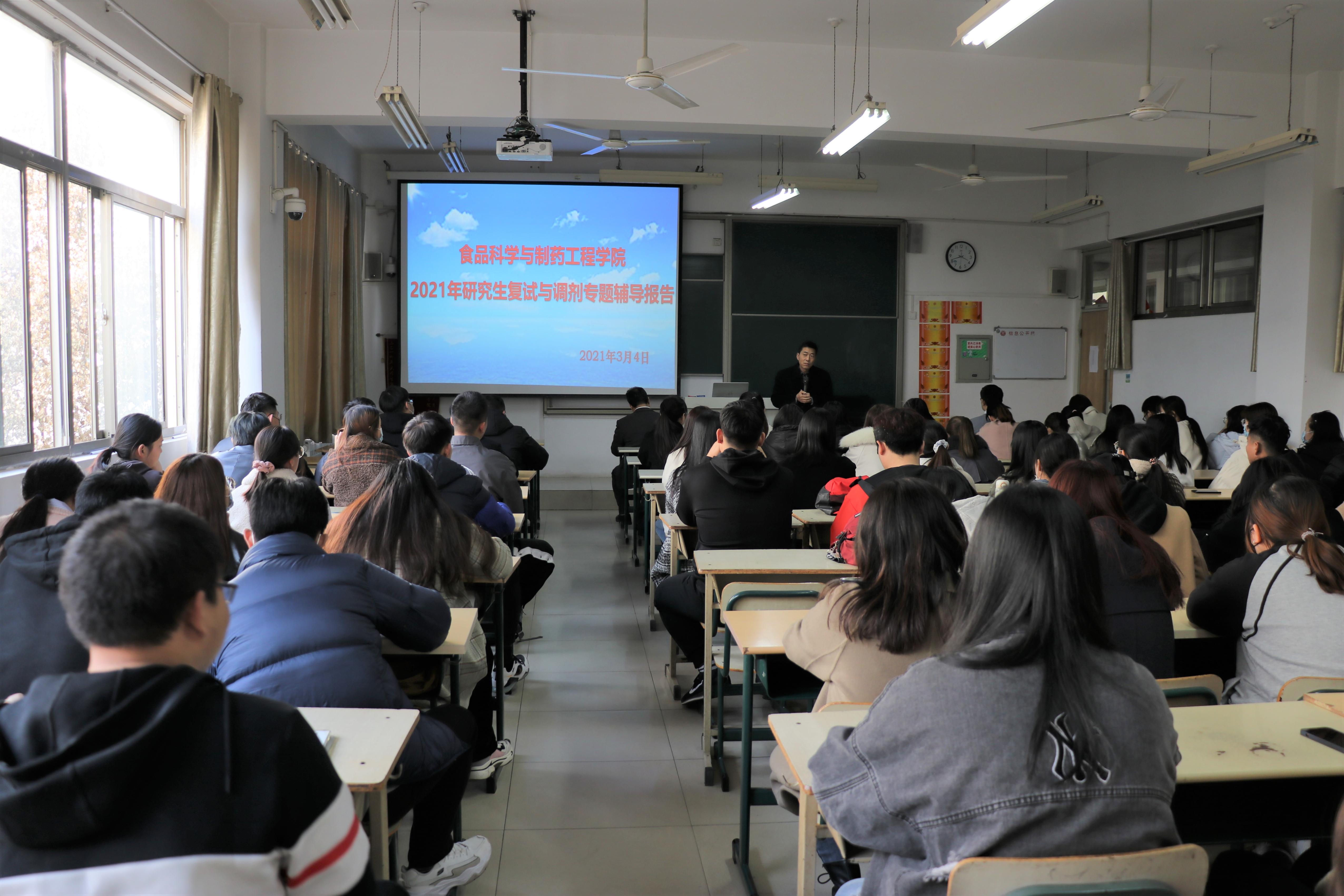 考研初试成绩出来后,学院第一时间摸排学生考研情况,准确掌握学生的初试成绩、报考学校、报考专业以及调剂意愿,建立动态台账并及时调度更新。随即,学院召开党政联席会,根据统计的初试成绩和前期调度的学生情况专题研究考研复试指导工作;召开全体教职工会议,动员全体教职工参与到考研复试指导工作中,构建全员育人格局;召开毕业班专业班主任、学业导师、辅导员专题会议,针对复试、调剂困难学生制定帮扶计划,重点指导;举办2021届毕业生考研复试与调剂专题辅导报告,学院党政领导分别从考研复试准备、考研调剂、联系报考院校导师、端正复试心态、增强个人信心等方面进行详细讲解和说明,为考研学子答疑解惑、加油鼓劲、提振士气。2021年考研国家线公布后,学院2021届毕业生过线人数达到89人,初试过线率实现新的突破。根据学生考研复试和调剂实际需求,学院相继开展面试技巧、调剂政策解读、专业知识培训、实验基本技能强化、实验仪器操作等方面的专题指导,全方位助力考研学子备战复试。
