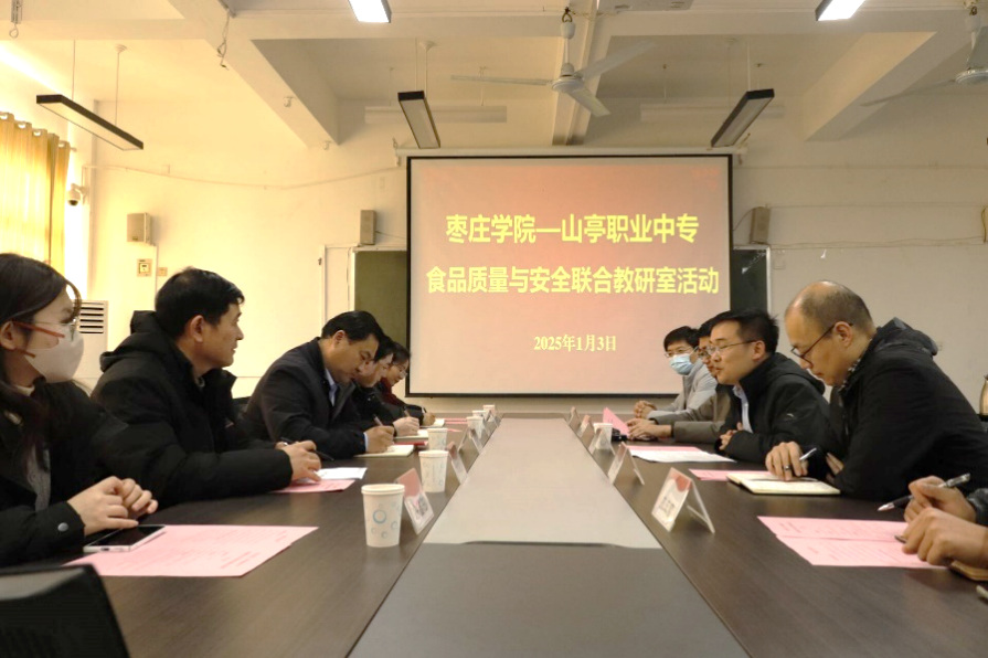 1月3日上午,我院与山亭职业中专食品质量与安全联合教研室活动在市中校区文213会议室举行,教务处副处长李宏运,山亭职业中专副校长张波出席活动。活动由副院长孙中贯主持,学院食品质量与安全专业、山亭职业中专食品安全与检测技术专业骨干教师参加会议。