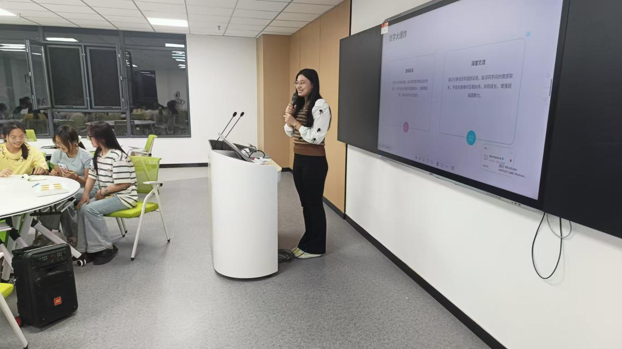 活动伊始,学院党委副书记黄成亮率先发言,他介绍了学校“一站式”学生社区心理健康服务内容,结合当下大学生的心理发展特点,深刻阐述了心理健康对个人成长的重要意义,强调了心理健康是学业进步和人格完善的基石,呼吁同学们要重视情绪管理与心理调节。活动中,“优点大轰炸”环节,学生们匿名书写同窗优点,随机抽取并朗读,被猜中的学生分享感悟,现场暖意融融;“胡辣汤”游戏里,大家按指令完成下蹲动作,蹲错的学生即兴表演,引得哄堂大笑;“数字大爆炸”环节,报数撞数的学生需准确喊出对方姓名,未能说出者便分享成长故事。此外,学生们写下一年后的目标封存,待明年5月25日时开启,为未来播种希望。