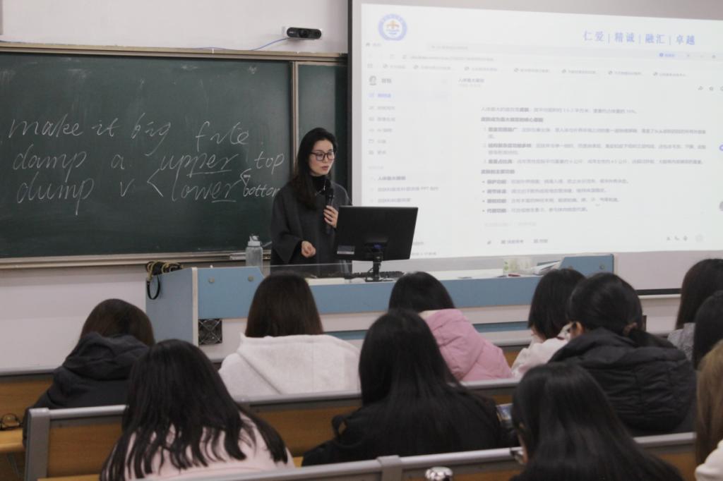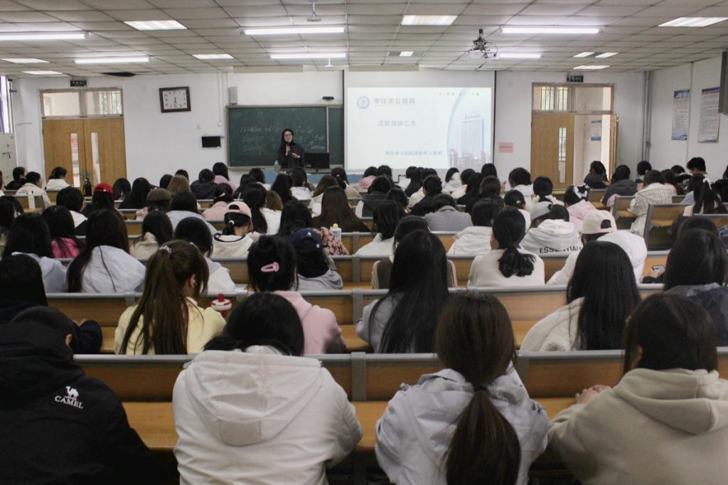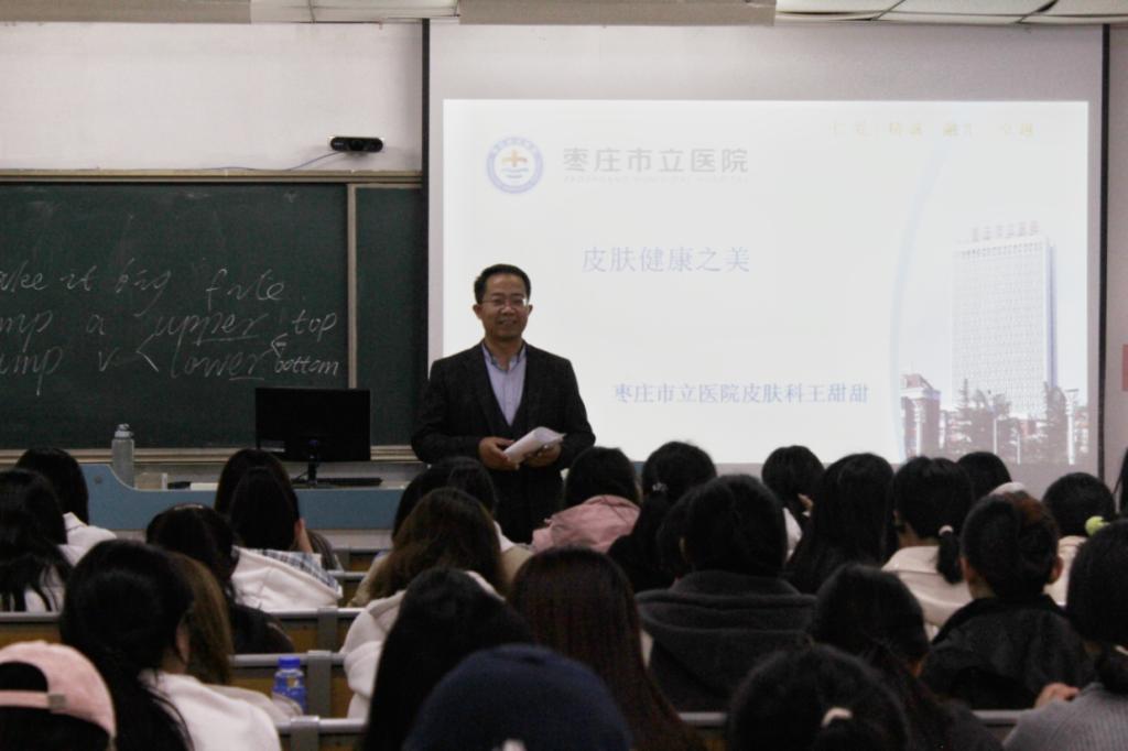 为切实关注大学生身心健康,普及皮肤健康知识,引导学子树立科学护肤观念,11月3日下午,yabo鸭脖官网在多媒体楼106教室举办了一场以“皮肤健康之美”为主题的专题讲座。本次讲座特别邀请了枣庄市立医院皮肤科副主任医师王甜甜博士担任主讲嘉宾,吸引了近百名学生积极参与。此次讲座由学院党委副书记黄成亮主持。
