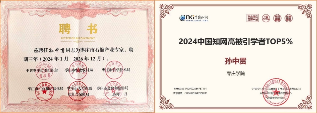 聚焦行业需求,他主持纵横向科研项目10余项,授权国家专利3项,实现成果转化1项;发表核心期刊论文15篇,跻身中国知网高被引学者TOP5%,荣获枣庄市自然科学优秀学术成果二等奖、枣庄市优秀企业科技创新派员。受聘山东省石榴精深加工工程技术中心副主任、省科技特派员、市石榴产业专家,为区域特色产业升级贡献智慧。