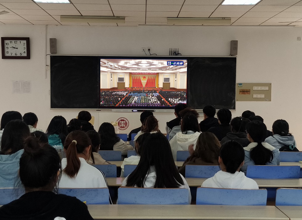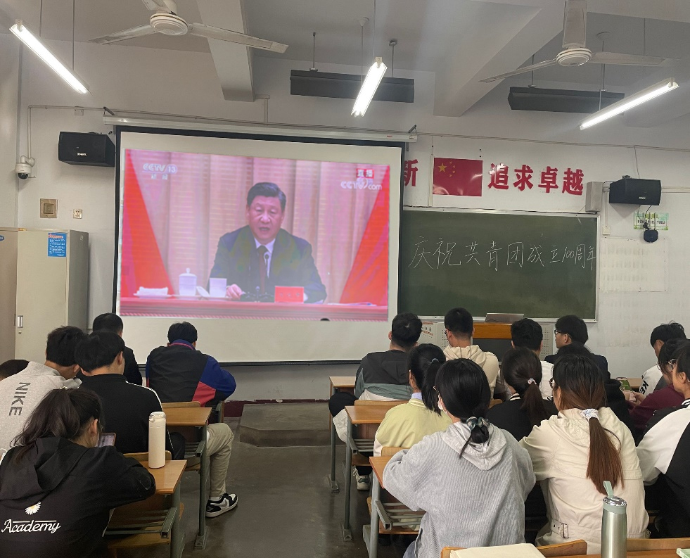 为学习贯彻习近平总书记重要讲话精神,深刻领悟共青团百年奋斗历程的宝贵经验,激发青年学生奋进力量,5月10日,yabo鸭脖官网在文科楼教室组织2021级全体学生观看庆祝中国共产主义青年团成立100周年大会直播。