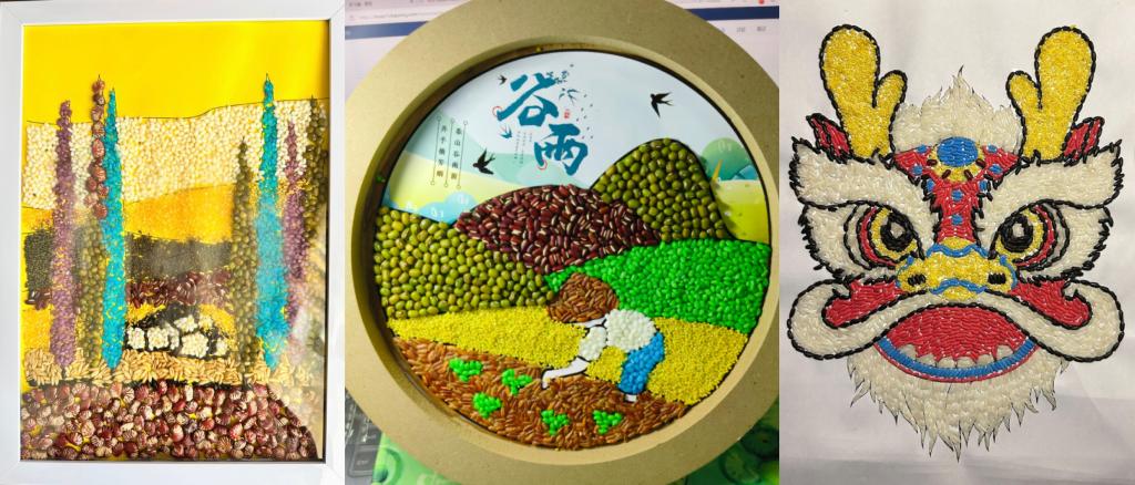 活动紧扣春季时令,以二十四节气“春生” 智慧为切入点,把农耕文化时序智慧转化为心理育人资源。同学们参与种子粘贴手工创作,用绿豆、红豆等不同质感种子,在纸板上勾勒出如节气 “谷雨” 主题的作品,将传统文化与手工实践结合,在创作中感受农耕文化魅力,增强文化自信与自我认同感。最后,评委们根据作品创意、工艺完成度等多方面综合考量,评选出一等奖2名、二等奖3名、三等奖5名。