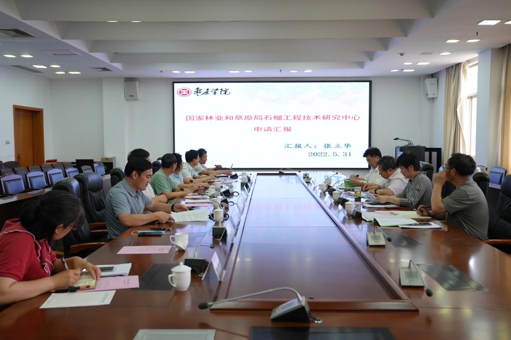 5月31日,省自然资源厅组织专家对我校牵头申报“国家林草局石榴工程技术研究中心”进行论证。山东省自然资源厅科技与国际合作处处长陈岩松、副处长王琰,山东省林业科学研究院副院长刘德玺研究员,山东省林草种质资源中心副主任解孝满研究员,枣庄市林业和绿化局党组成员、林业中心支部书记魏士省,枣庄市林业事业发展中心种苗站站长陈兴振研究员,我校党委委员、副校长李目海及石榴工程技术研究中心申报工作主要负责同志出席会议。会议由枣庄学院科技处处长伊文涛主持。