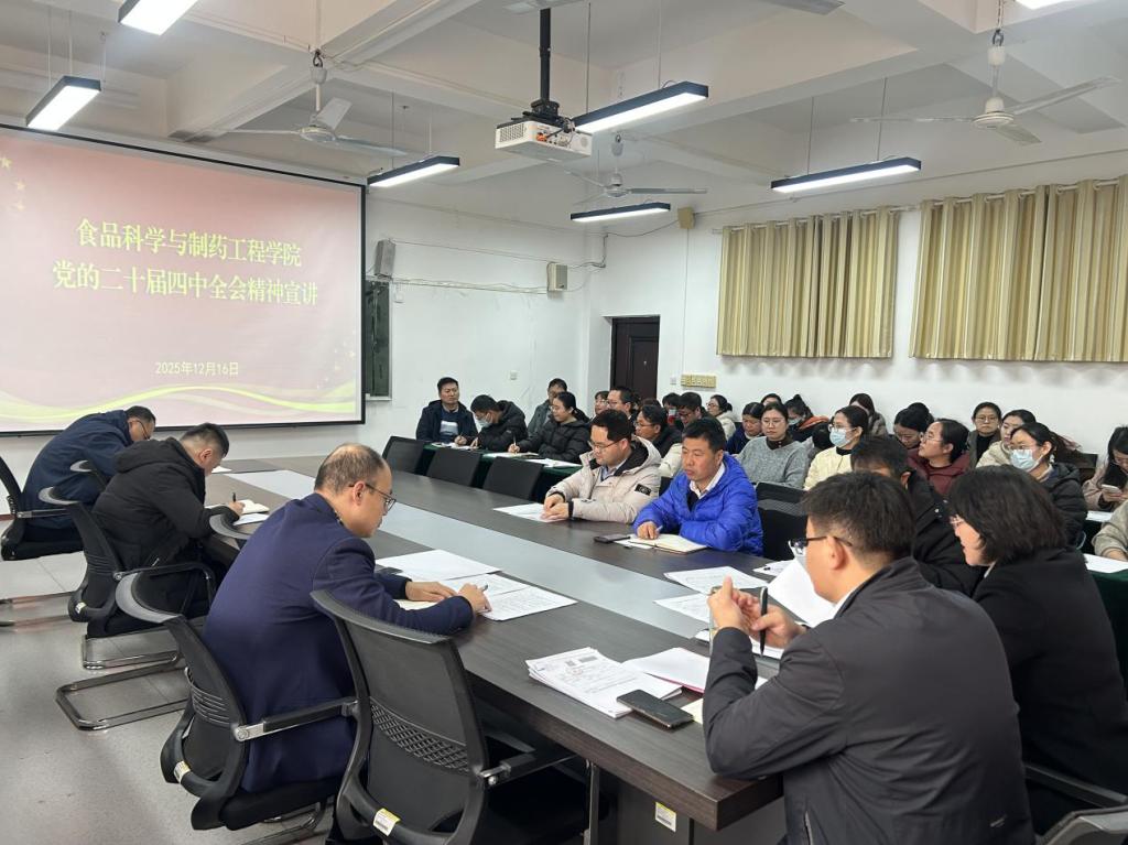 华莹以“锚定食药新使命奋进‘十五五’新征程”为主题,围绕全会的历史背景、重大意义、核心要义与战略部署展开,全面阐述了“十四五”时期我国发展取得的重大成就以及“十五五”时期经济社会发展的主要目标和重点任务,解读了全会审议通过的《中共中央关于制定国民经济和社会发展第十五个五年规划的建议》,着重强调了全会关于教育强国、人才强国及发展新质生产力的部署要求。她要求,全体教职工要将全会精神融入教学、科研、育人全过程,在食品、制药领域深耕细作;学生要锚定行业需求,在实践中练就本领;全院上下要凝聚合力、真抓实干,把学习成效转化为推动学院高质量发展、服务健康中国战略的实际行动。