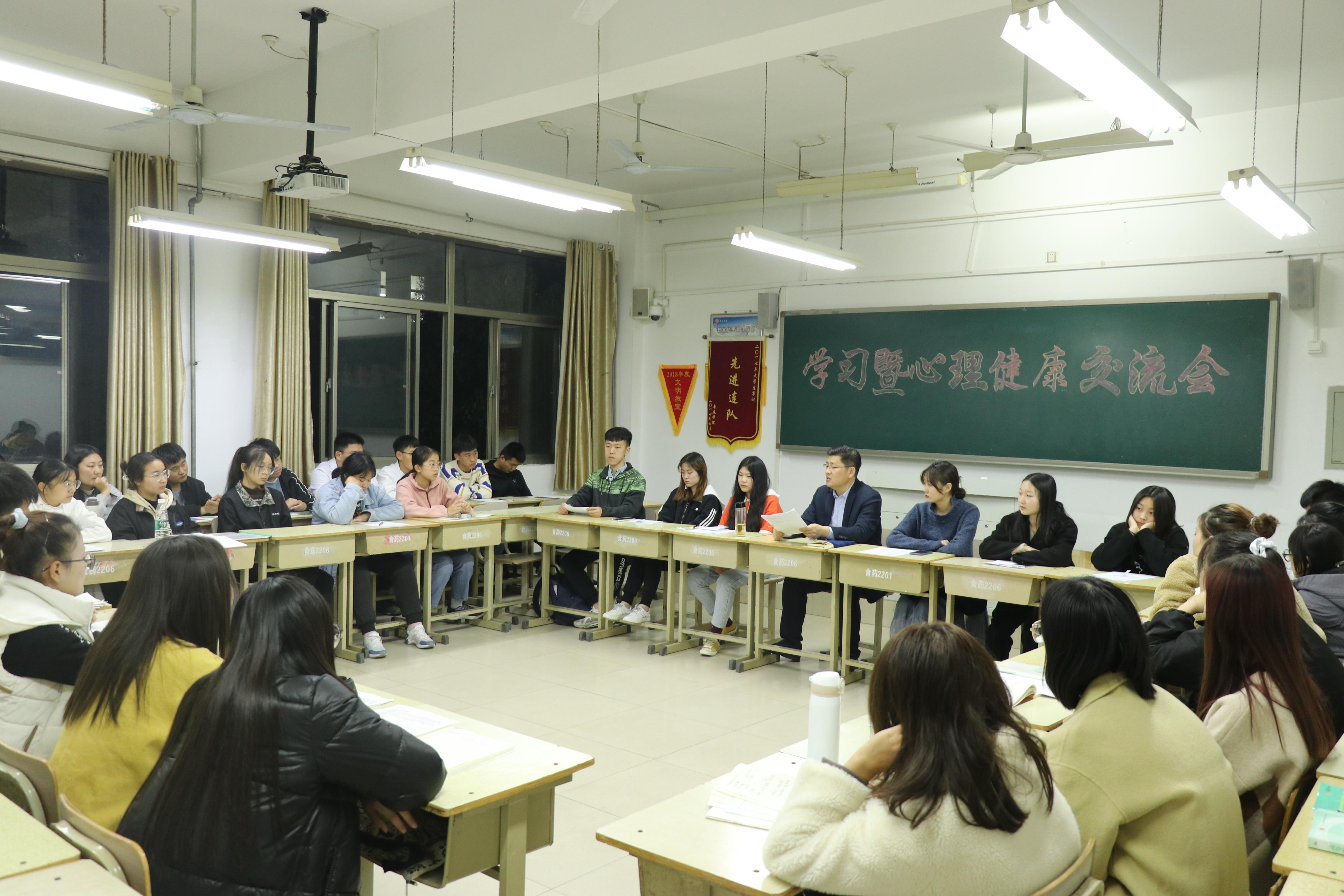 11月13日晚,yabo鸭脖官网在理工楼分班级举办了心理健康教育座谈交流会,学院选取高年级优秀学生代表帮助20级新生们解疑答惑,进行心理疏导,解决同学们在学习生活方面遇到的问题和困惑,院党总支副书记周玉亮到会指导。
