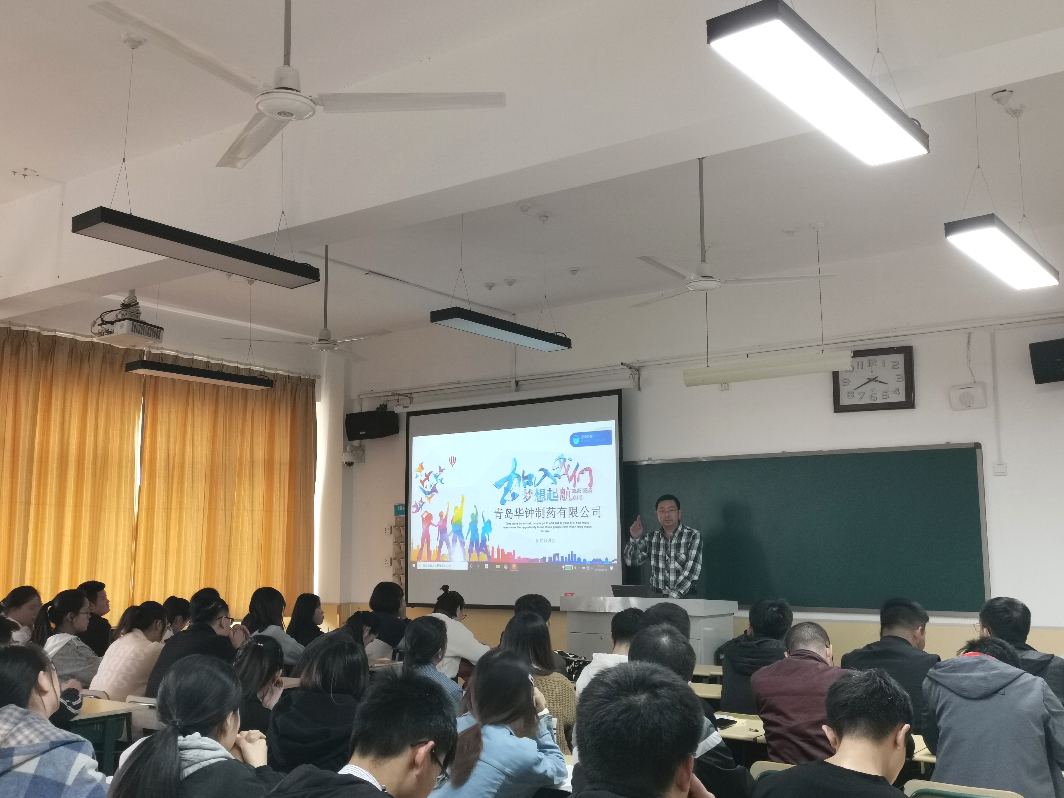 为促进学生就业,加深行业认识,yabo鸭脖官网于10月17日下午在理工楼2201教室举行企业招聘宣讲会。新希望六和股份有限公司、青岛华钟制药有限公司两家公司负责人出席了此次宣讲会,16级食品科学与工程专业学生参加了会议。