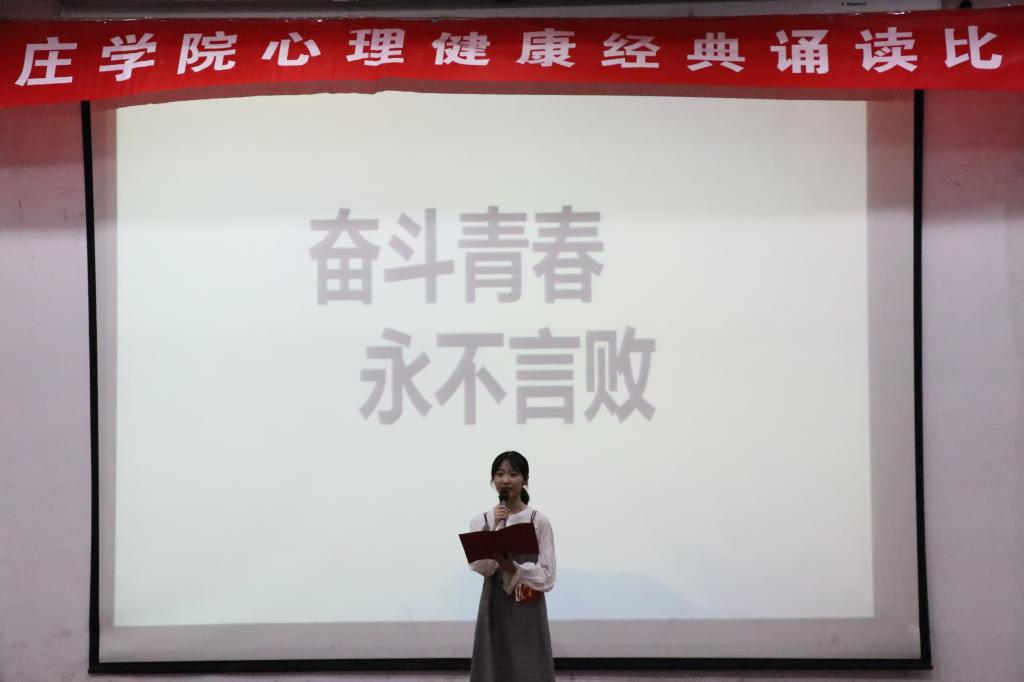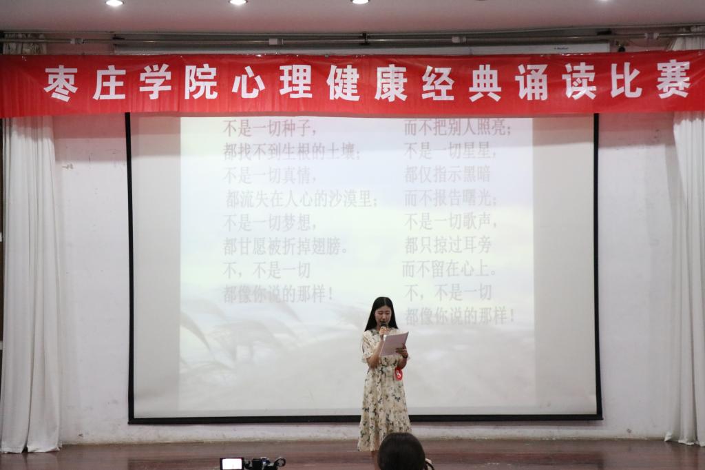 为全面促进大学生健康心理素质、思想道德素质与科学文化素质协调发展,培育学生自尊自信、理性平和、积极向上的健康心态。6月11晚,yabo鸭脖官网联合文学院在我校文科楼报告厅举行“奋斗的青春”为主题的大学生心理健康教育经典诵读比赛。此次活动由学生工作处主办,文学院团总支、yabo鸭脖官网团总支承办。yabo鸭脖官网团总支副书记孙星、文学院辅导员邵圆圆老师、心理健康教育与咨询中心孔祥武老师、校学生会副主席史珂等担任评委。来自各学院的部分学生观看了比赛。