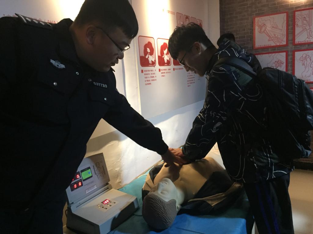 在活动现场,保卫处王旭老师为同学们详细讲解了不同类型消防设备功能和使用方法,演示了消防栓和干粉灭火器等消防灭火设备的使用技巧;围绕学生生活场所,从火灾预防、火场逃生自救及互救、火灾应急措施等方面进行了现场教学;对人工“心肺复苏”方法的使用进行了讲解并组织同学开展心肺复苏急救模拟练习。活动期间,保卫处老师亲身示范、生动讲解,引导同学们零距离参与互动,熟悉熟练应急逃生技能。
