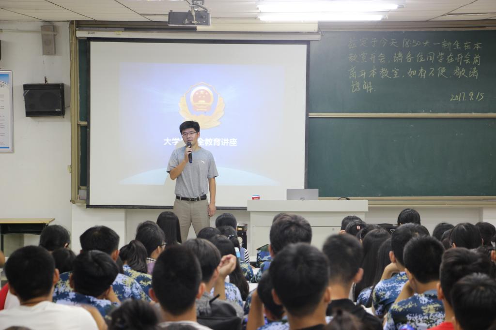 为增强2017级新生安全意识,提高自我保护能力,创建平安校园。近日,学院在理工楼2106教室举办面向2017级新生的大学校园安全教育讲座。本次讲座由保卫处秦国华副科长担任主讲。