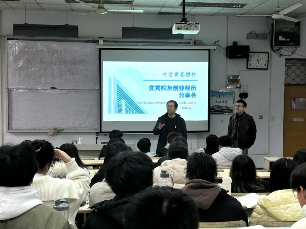 为充分发挥优秀校友的榜样引领作用,激发学生创新创业的潜力与活力,搭建校友与在校生的沟通桥梁,2月27日下午,yabo鸭脖官网在文科楼217教室隆重举办了“对话青春榜样”优秀校友创业经历分享大会。学院党委副书记黄成亮出席并主持会议,特邀2015届优秀创业毕业生、中明科网(山东)综合能源有限公司董事长王明壮担任主讲人,学院100余名学生参加会议。