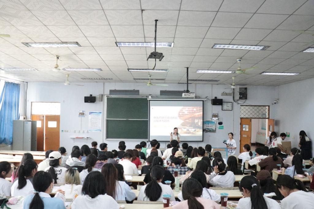 会上,王京龙院长为王丽副院长颁发了客座教授聘书。王丽副院长从中医药的发展历史由浅入深,系统论述了新技术对中医药研究创新发展的影响,展望了中医药研究前沿技术的发展趋势。此外,王丽结合26年中药制剂研发实践经验,分享了新质生产力赋能中药制剂研发、药膳研发、大健康产业研发的心得体会。为同学们提供中药药膳、中药养生茶饮、中药文创产品的免费品鉴、交流、分享等互动活动。会后,王丽与师生们进行了深入的交流,并就师生们提出的问题做出了耐心解答。