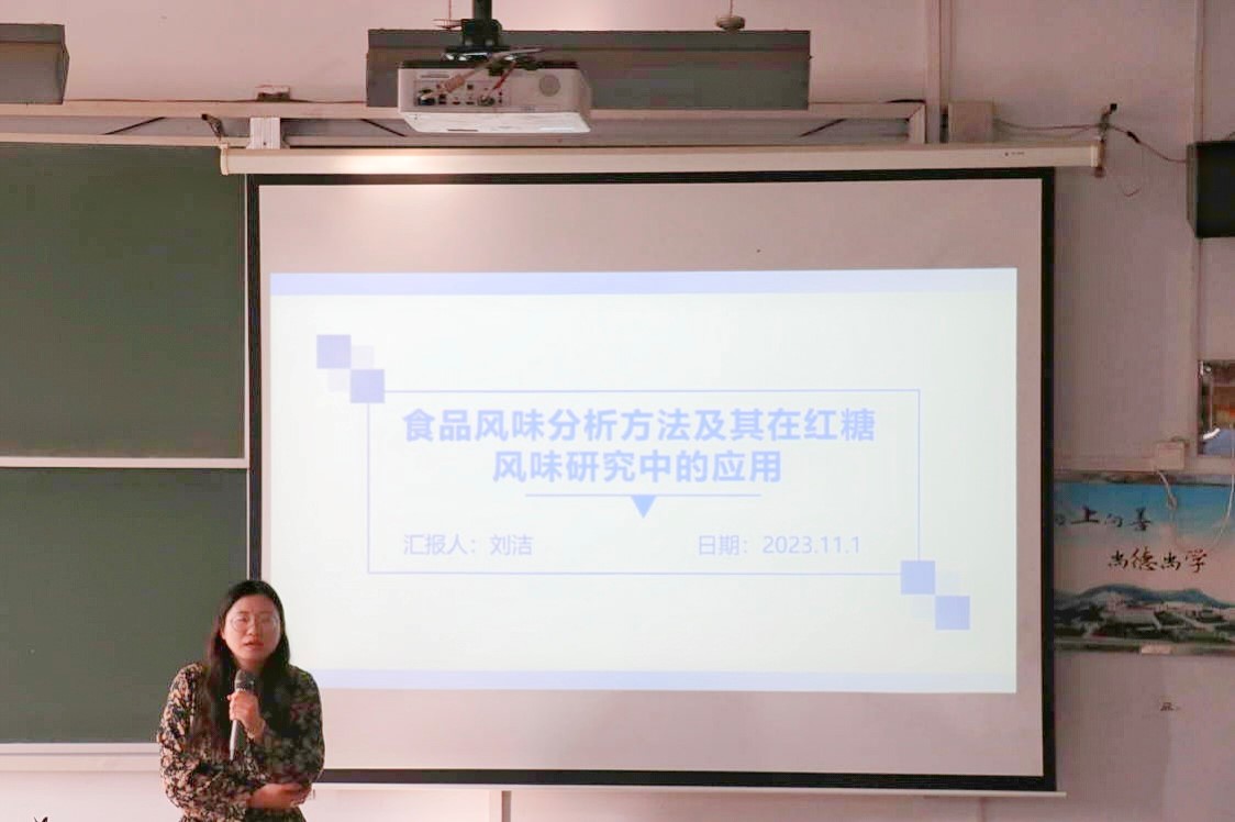 为进一步增进学术交流,拓展学院师生的学术视野。yabo鸭脖官网于11月1日在文科楼117教室举办题为“食品风味分析方法及其在红糖风味研究中的应用”的学术报告会。本次报告会由刘洁博士主讲,“石榴+植物资源团队”全体教师及2022级食品科学与工程、2023级食品科学中外合作二班全体学生参加。