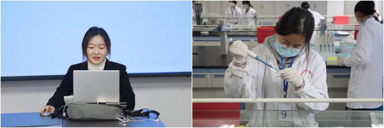 本次比赛设置了生物科技创新创业比赛、生物化学理论与实验技能比赛两个赛道。生物科技创新创业比赛通过线上同步直播进行,团队成员需在规定时间内,完成项目PPT展示、实物展示 、评委问询答辩等环节。生物化学理论与实验技能比赛,要求参赛同学们以动物或植物作为实验材料,综合运用相关实验课程的操作技能,按照组委会给出的题目和基本步骤,在240分钟内开展相关实验,并完成实验报告。