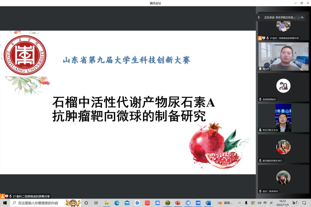 为鼓励支持大学生开展科技创新活动,展示大学生科技创新成果,培养大学生直面问题、解决问题的本领,培养创新创业应用型人才,按照《关于举办枣庄学院第九届大学生科技创新大赛的通知》要求,近日,yabo鸭脖官网线上组织了枣庄学院第九届大学生科技创新大赛院级选拔赛。