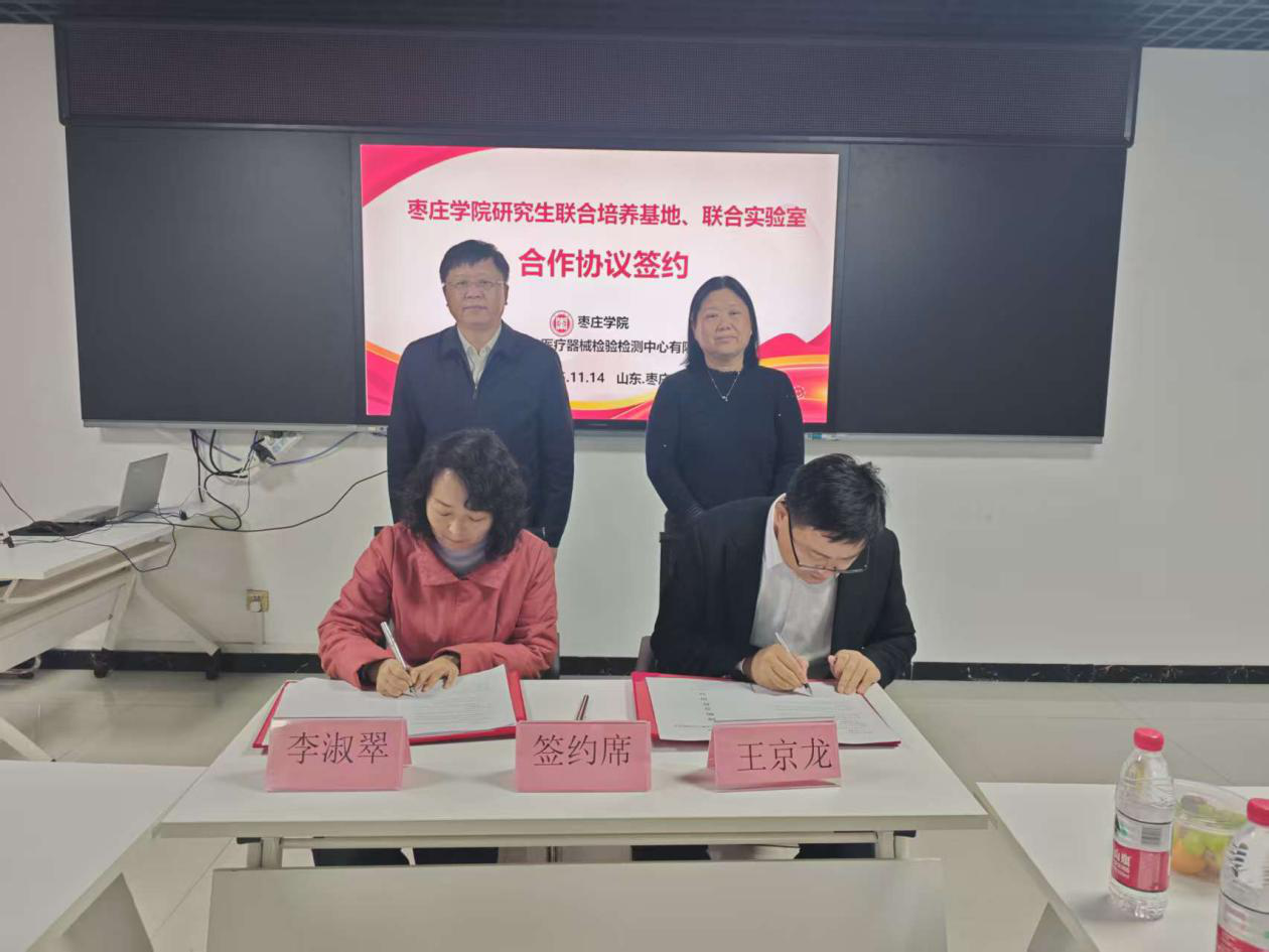 2025年11月14日下午,由枣庄学院与山东邦众医疗器械检验检测中心有限公司联合主办的“大健康产业学术沙龙暨枣庄学院研究生联合培养基地、联合实验室揭牌仪式”在枣庄高新区新医药产业园综合办公楼三楼会议室隆重举行。校党委委员、副校长李目海,山东邦众总经理李淑翠出席活动。我校yabo鸭脖官网院长王京龙、健康工程技术研究院院长韦德泉和部分教师代表参加活动。